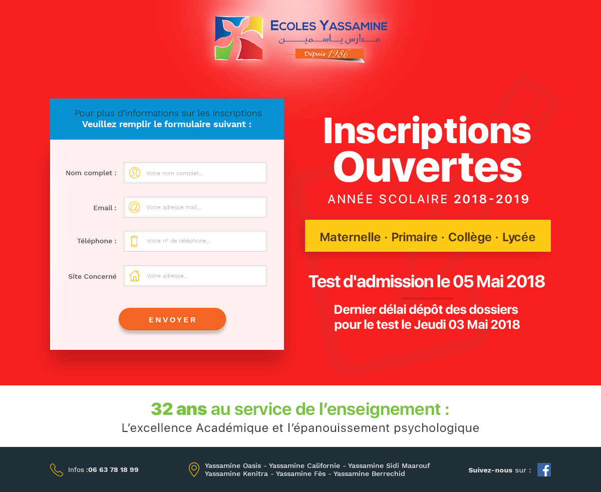 Depuis leur création en 1986, les écoles Yassamine se sont engagées à donner aux enfants le goût d'apprendre dans un environnement épanouissant. Les écoles YASSAMINE appartiennent à la Holding Générale d’Education ’’HOLGED’’, première holding spécialisée dans l’éducation au Maroc qui compte, à ce jour, plusieurs écoles au niveau national et international s’inscrivant dans deux modèles d’enseignement, trilingue et homologué.