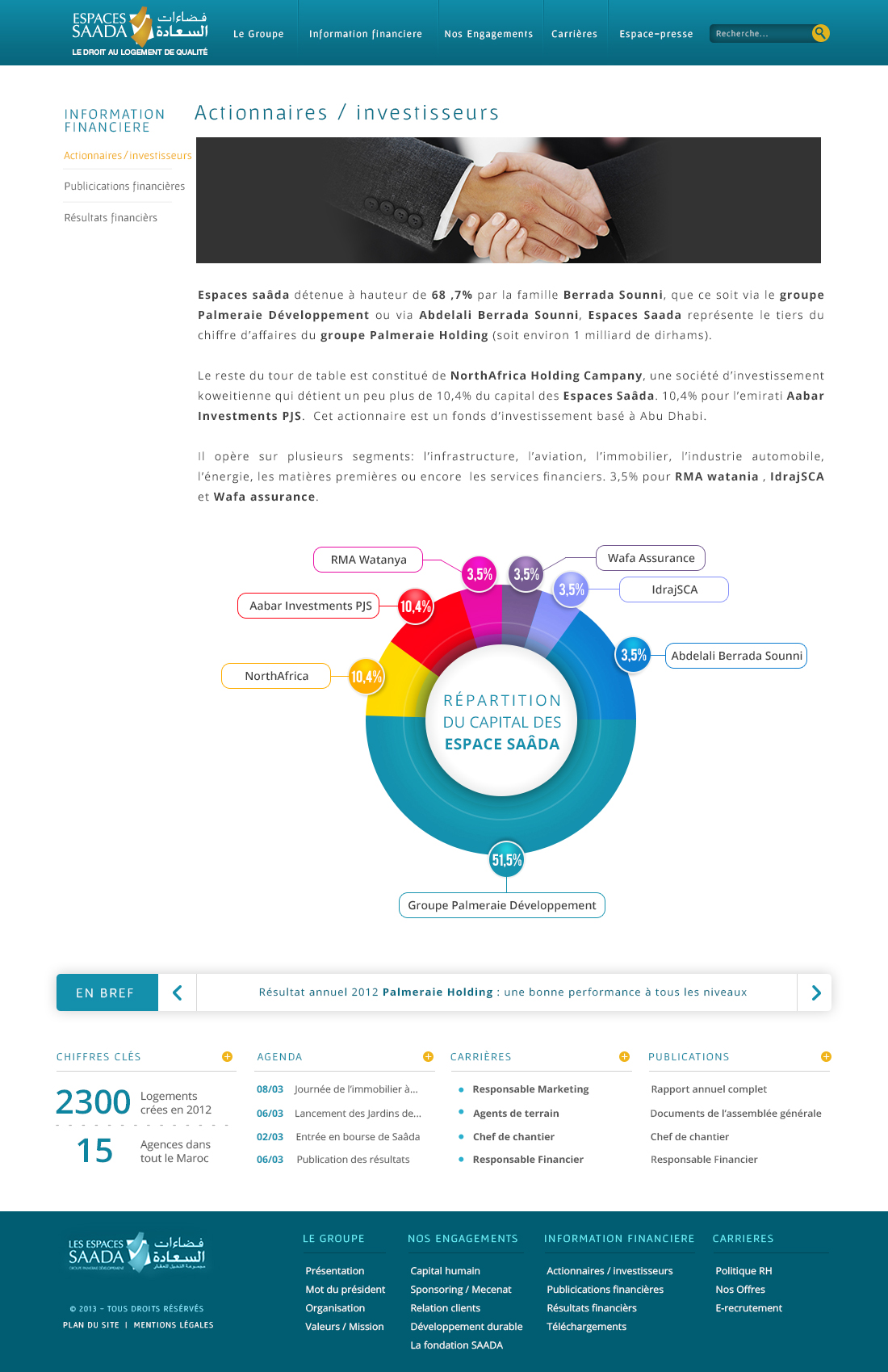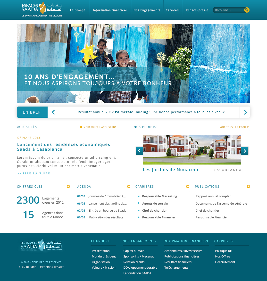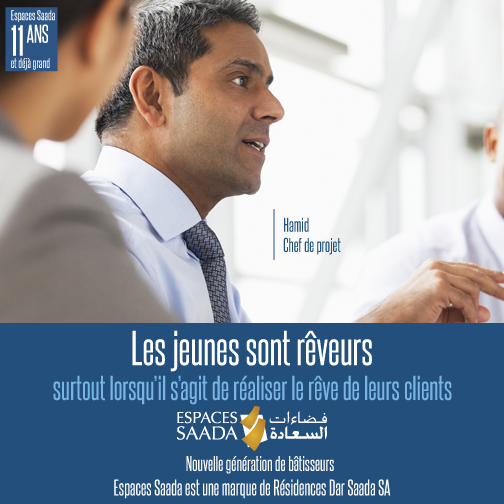 Filiale de Palmeraie Développement, Espaces Saada se spécialise dans la réalisation de projets immobiliers de moyen standing et économiques, en mettant l’accent sur des valeurs fortes de qualité et d'innovation.