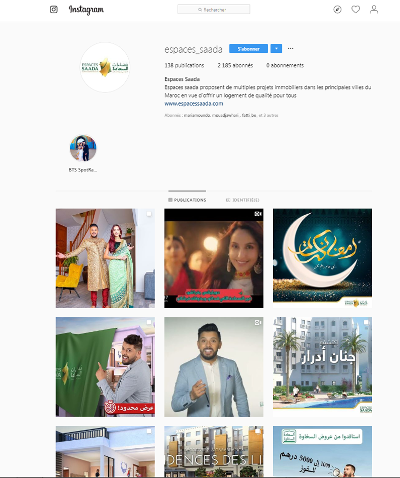 En tant qu'agence digitale principale de Espaces Saada, nous gérons leur community management, leur social media management et soutenons activement leurs campagnes promotionnelles en ligne.