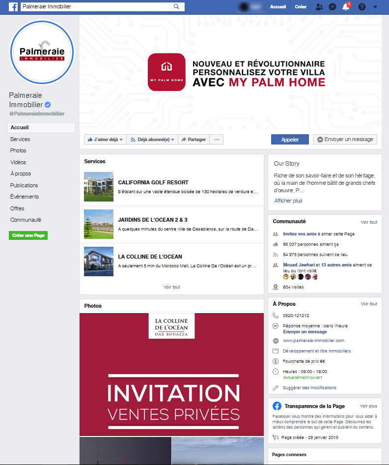 Nous avons élaboré une stratégie de Brand Content sur mesure pour Palmeraie Immobilier, en assurant la promotion de ses campagnes web et le community management de la marque.